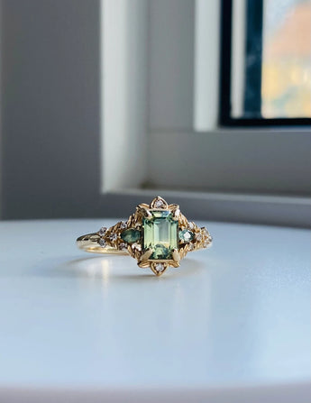 Arwen - Light Green Sapphire Emerald Cut Engagement Ring 14k Gold