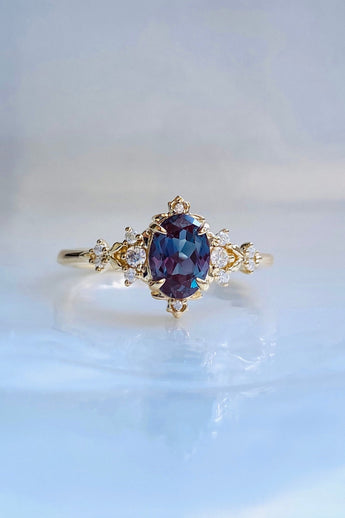 Dela - Alexandrite Oval Cut Engagement Ring 14k Gold