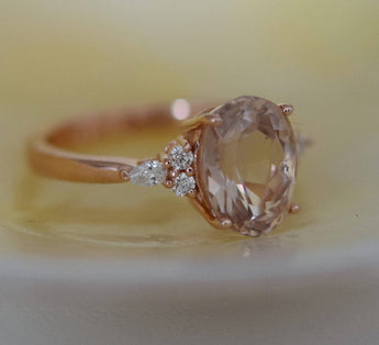 Campari engagement ring with oval rosé sapphire.