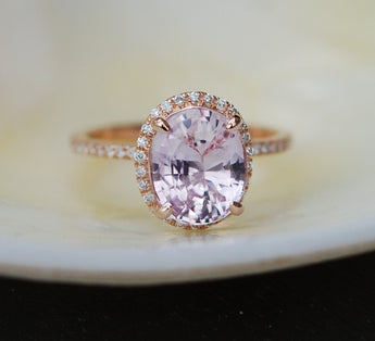 Oval Ice Peach Sapphire Halo Ring