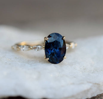 Navy Sapphire Oval Engagement Ring 14k Gold – Godivah