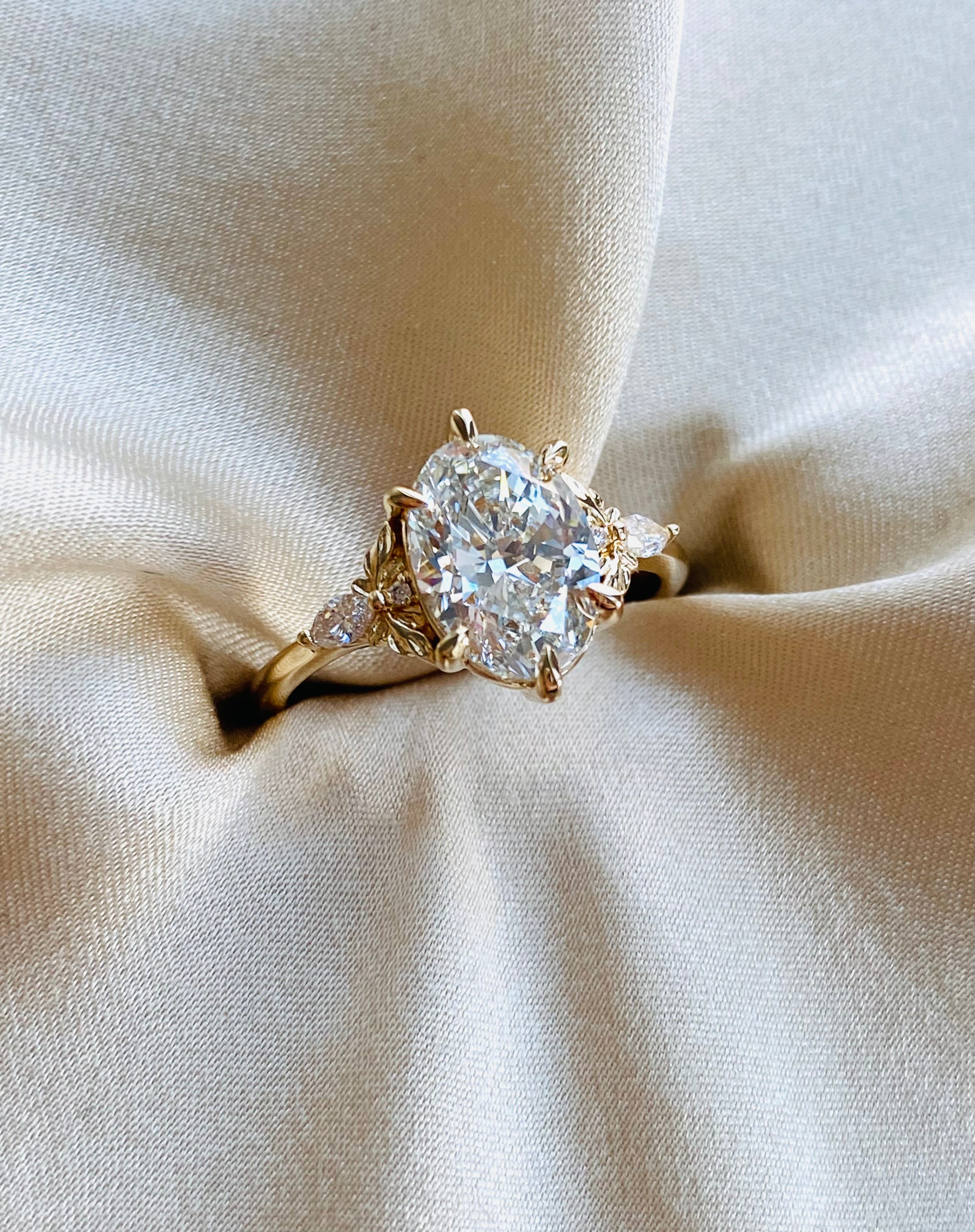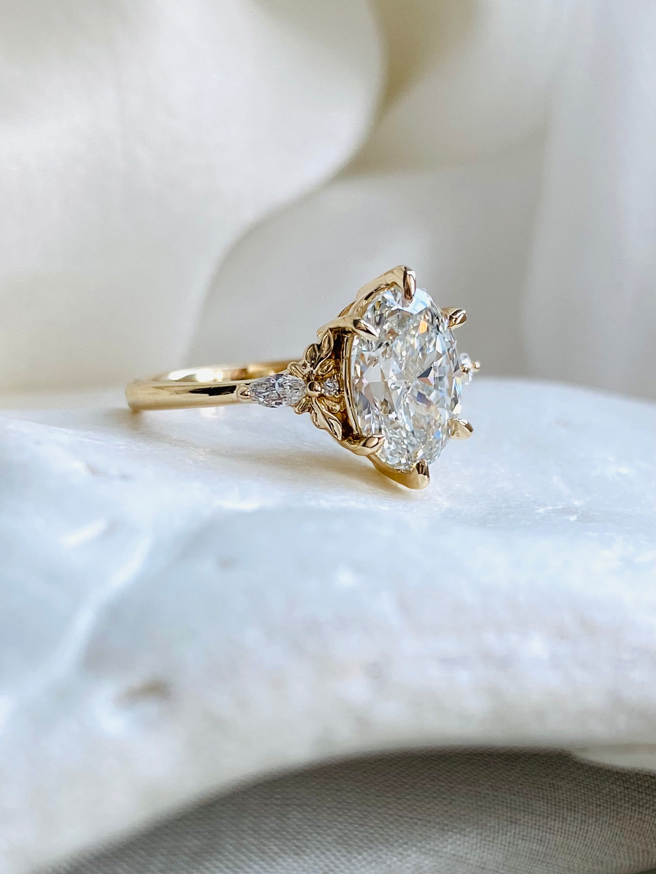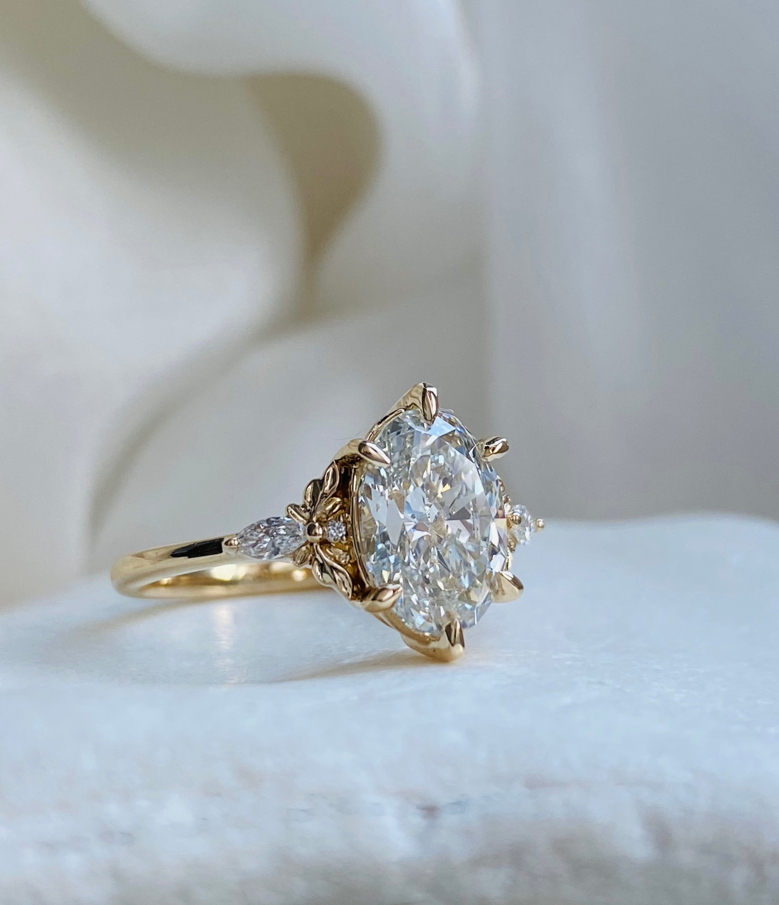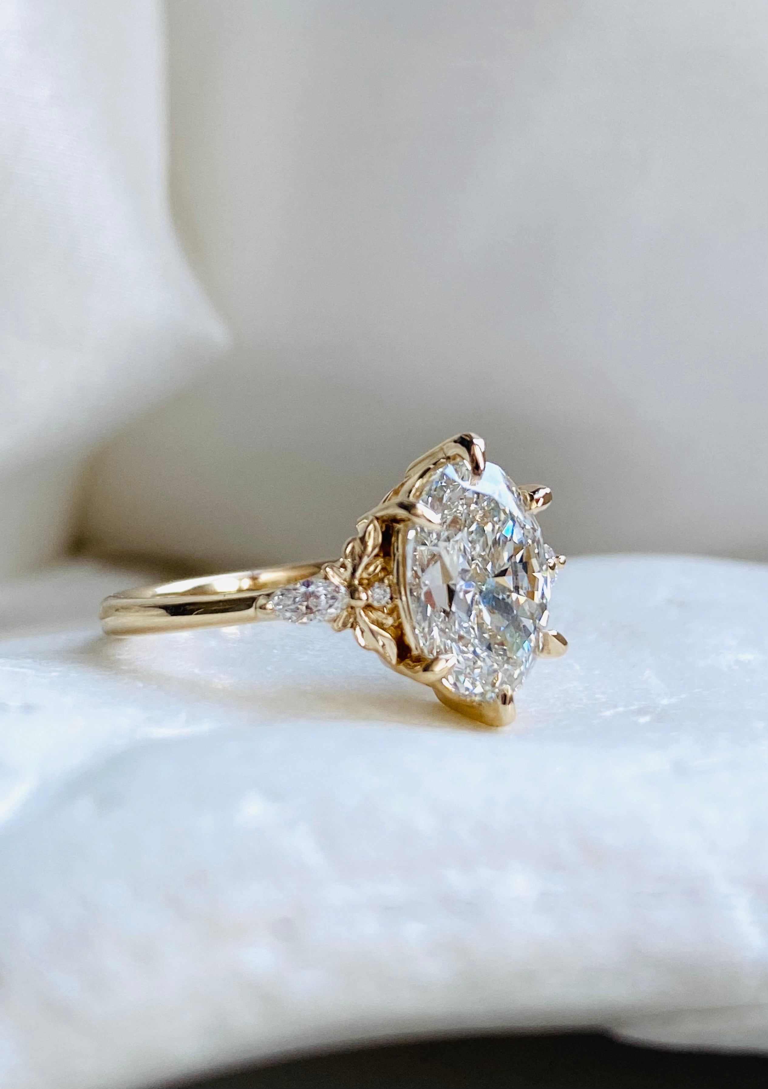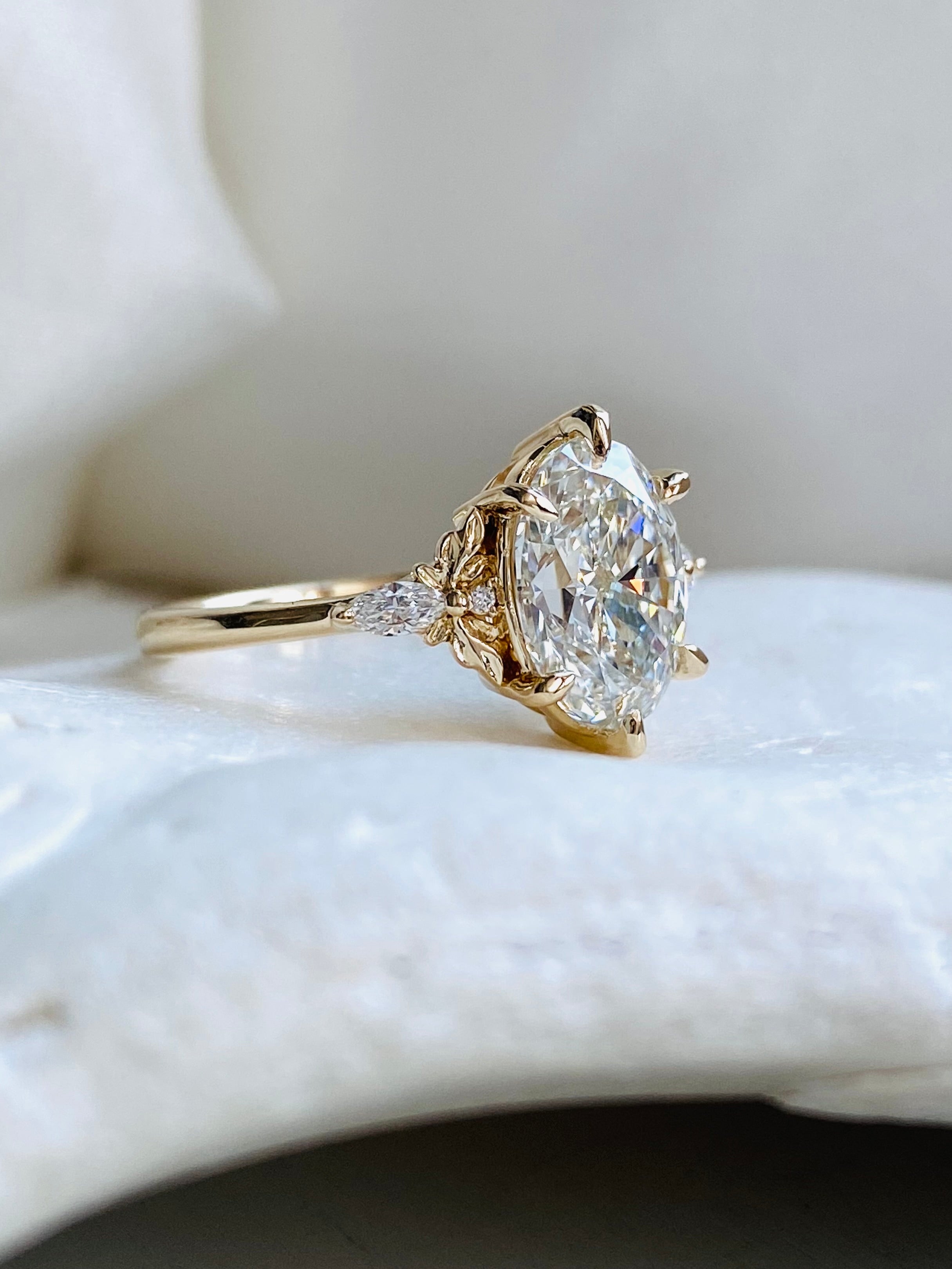 Meliora - 2ct Oval Lab Diamond Engagement Ring – Elvish Inspired 14k Gold