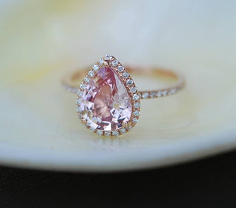 Pear Pink Sapphire Halo Ring