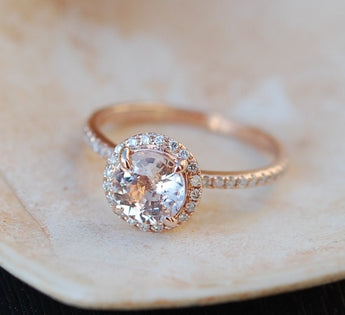 Round Peach Sapphire Halo Ring