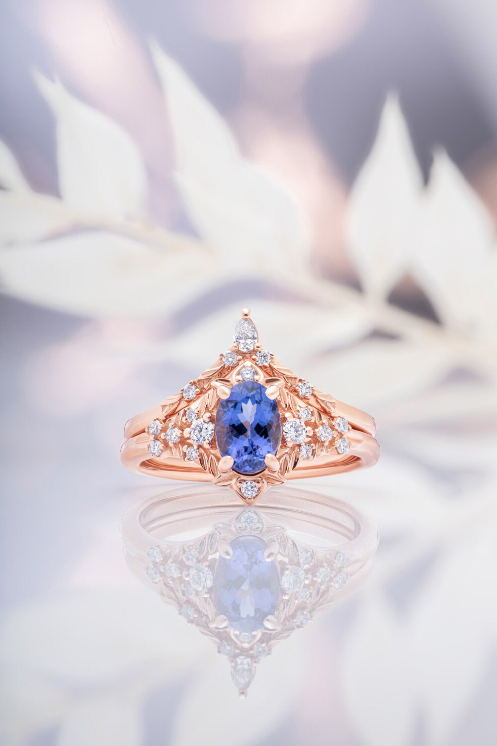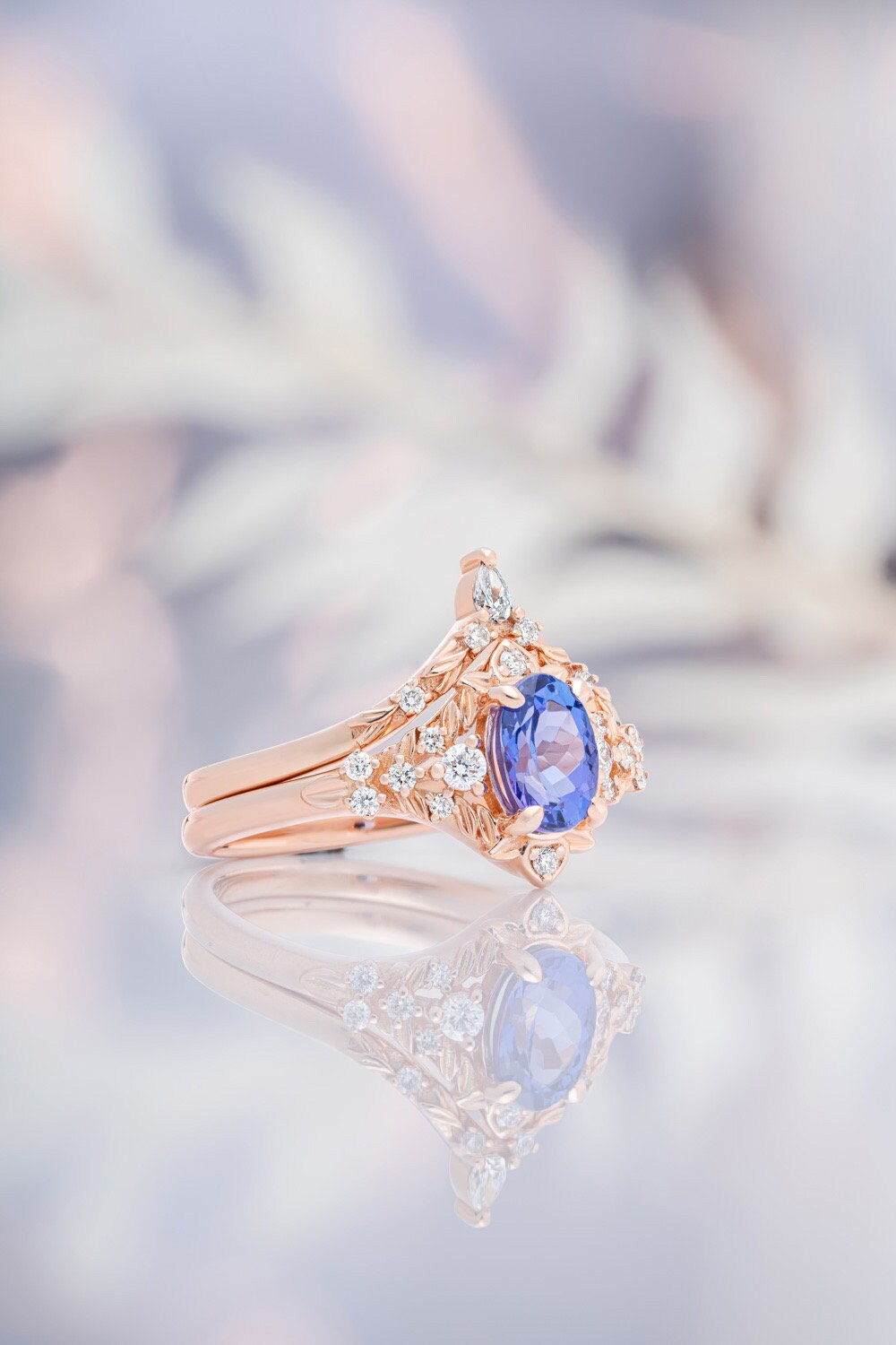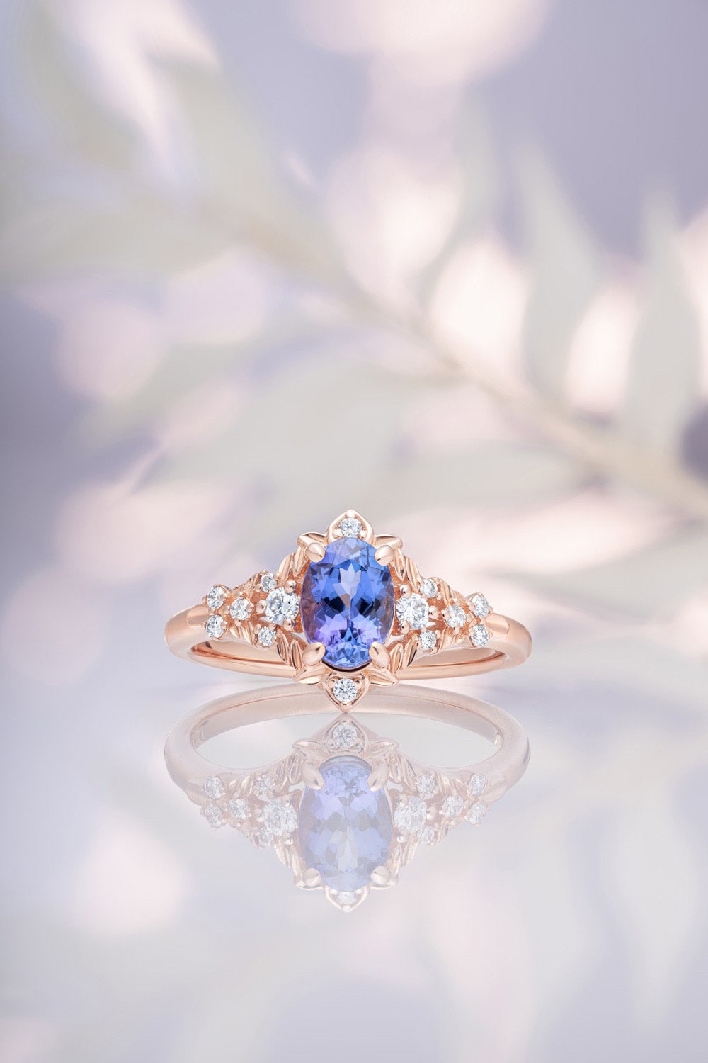 Tanzanite and diamonds engagement ring in rose gold Fantasy inspired ring.