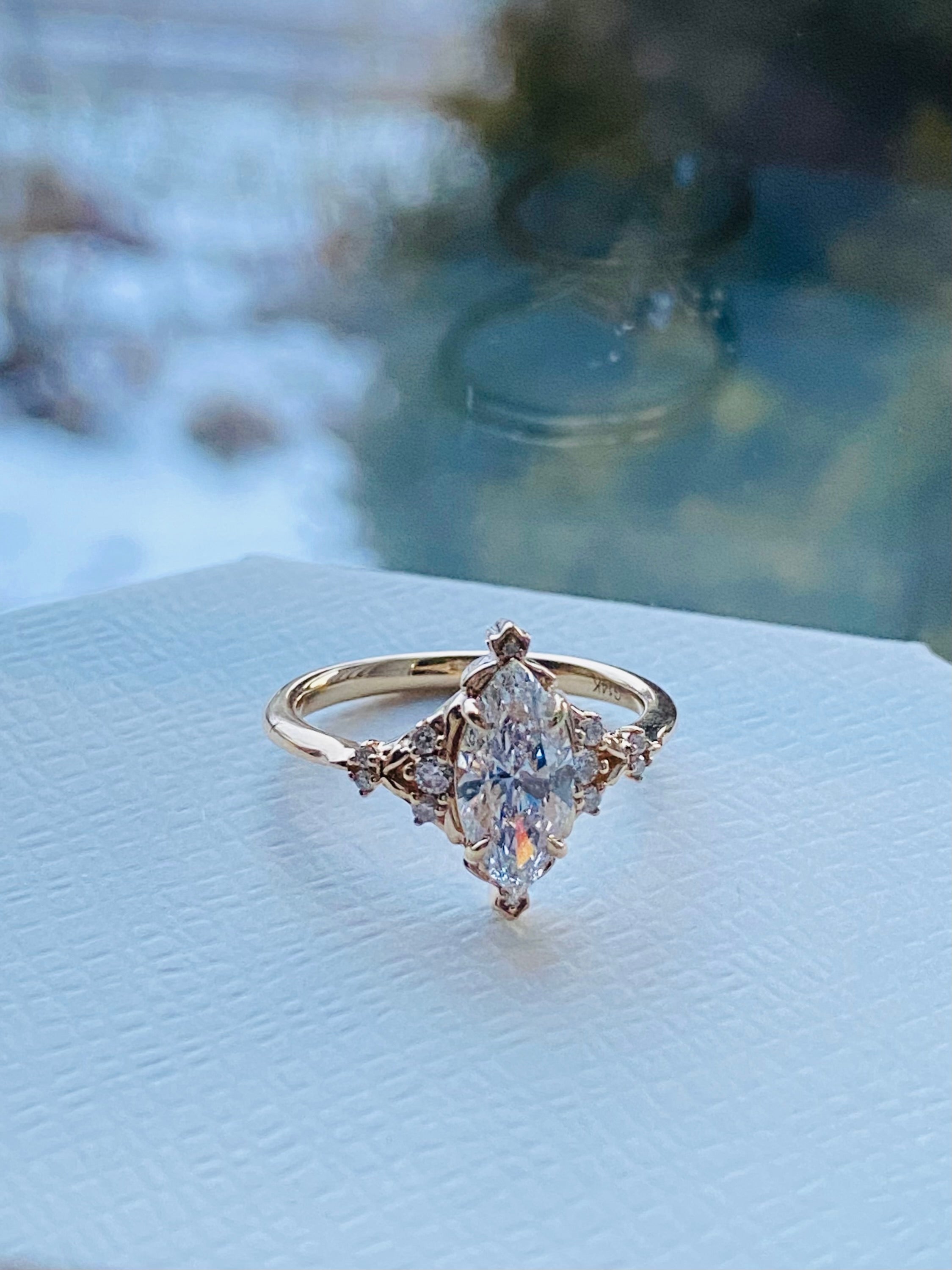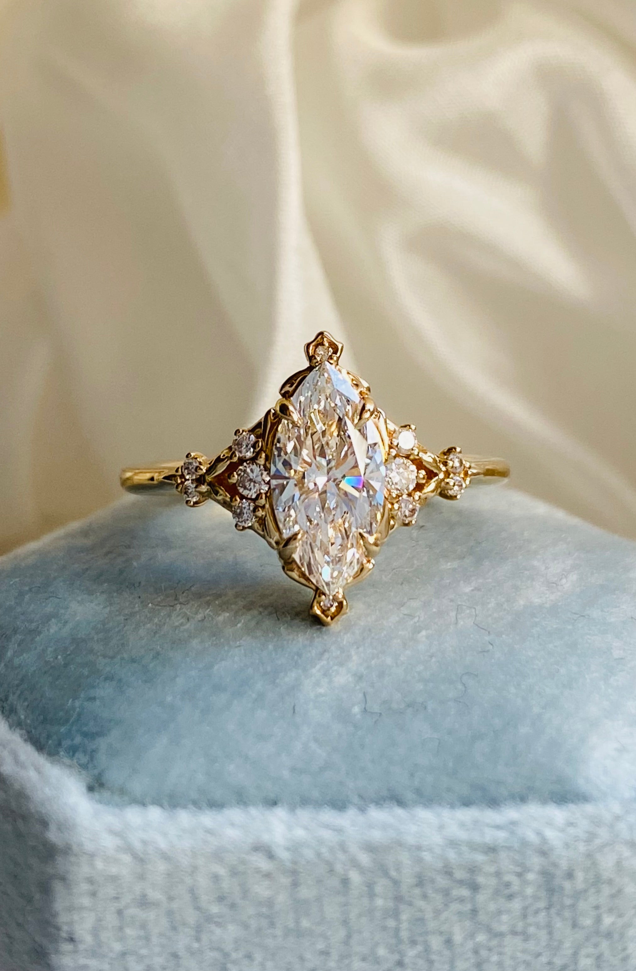 • Center stone: 1ct Marquise cut lab grown diamond, IGI certified